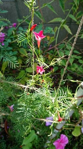 モミジルコウが咲きましたアサガオならぬ昼顔かな?小さくて赤い花が咲きます。