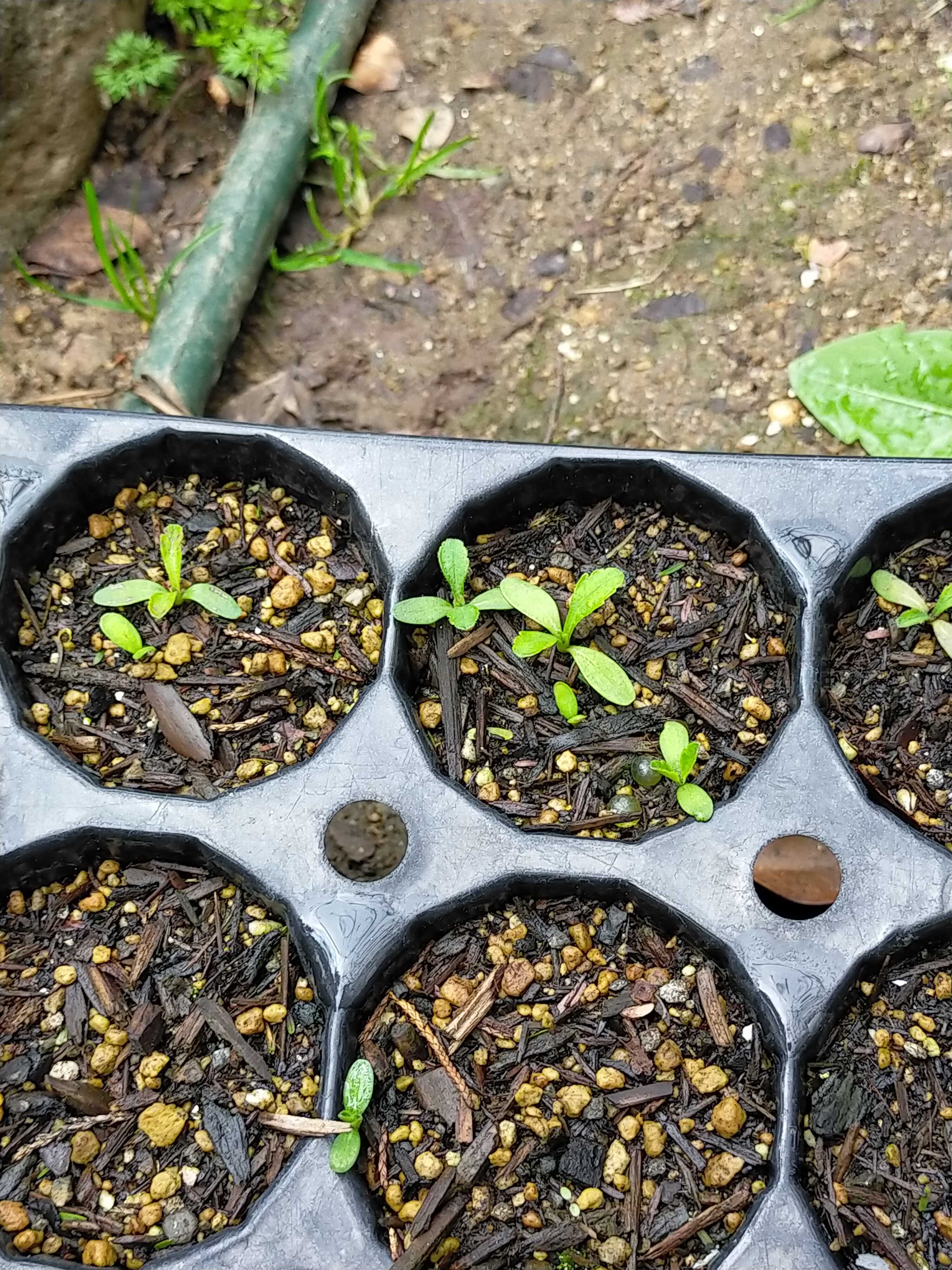 ラインのオプチャ仲間からこぼれ種で千日紅の芽が出てると報告あったので