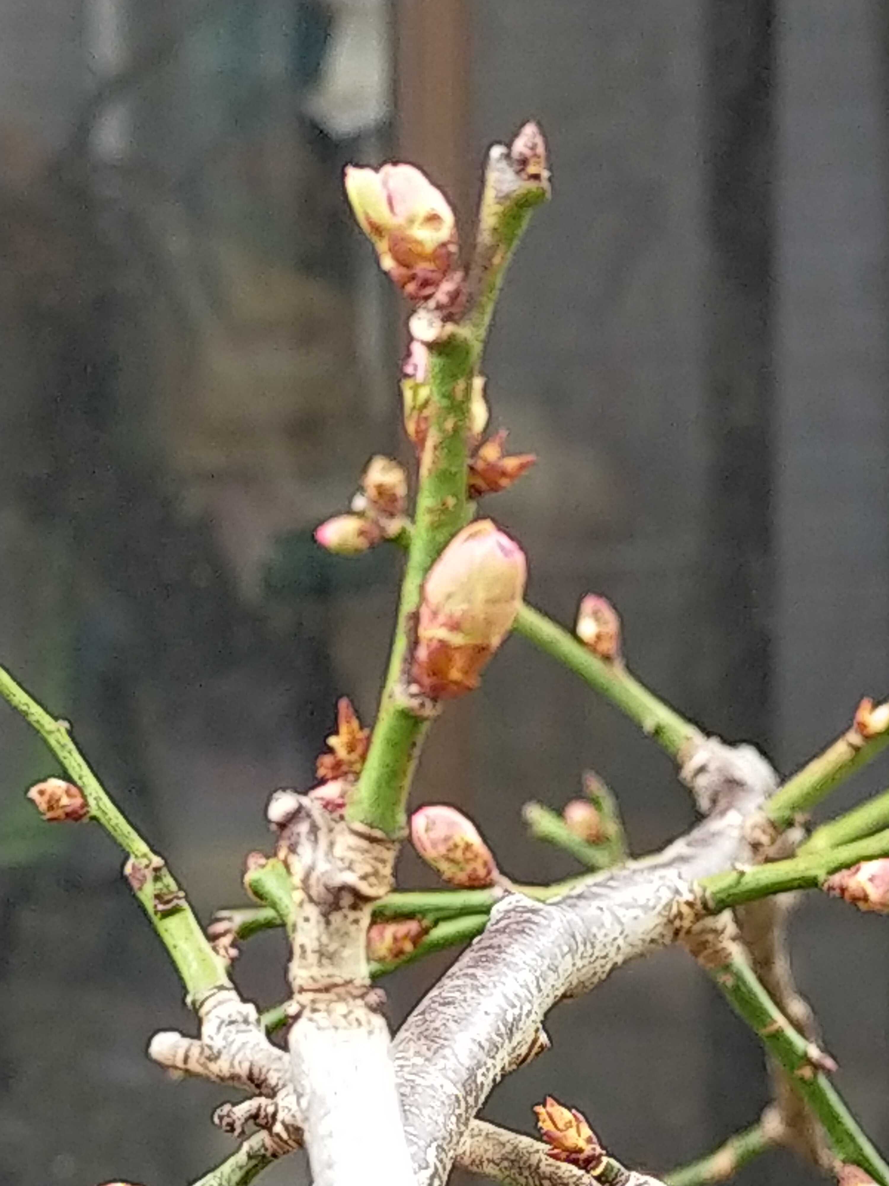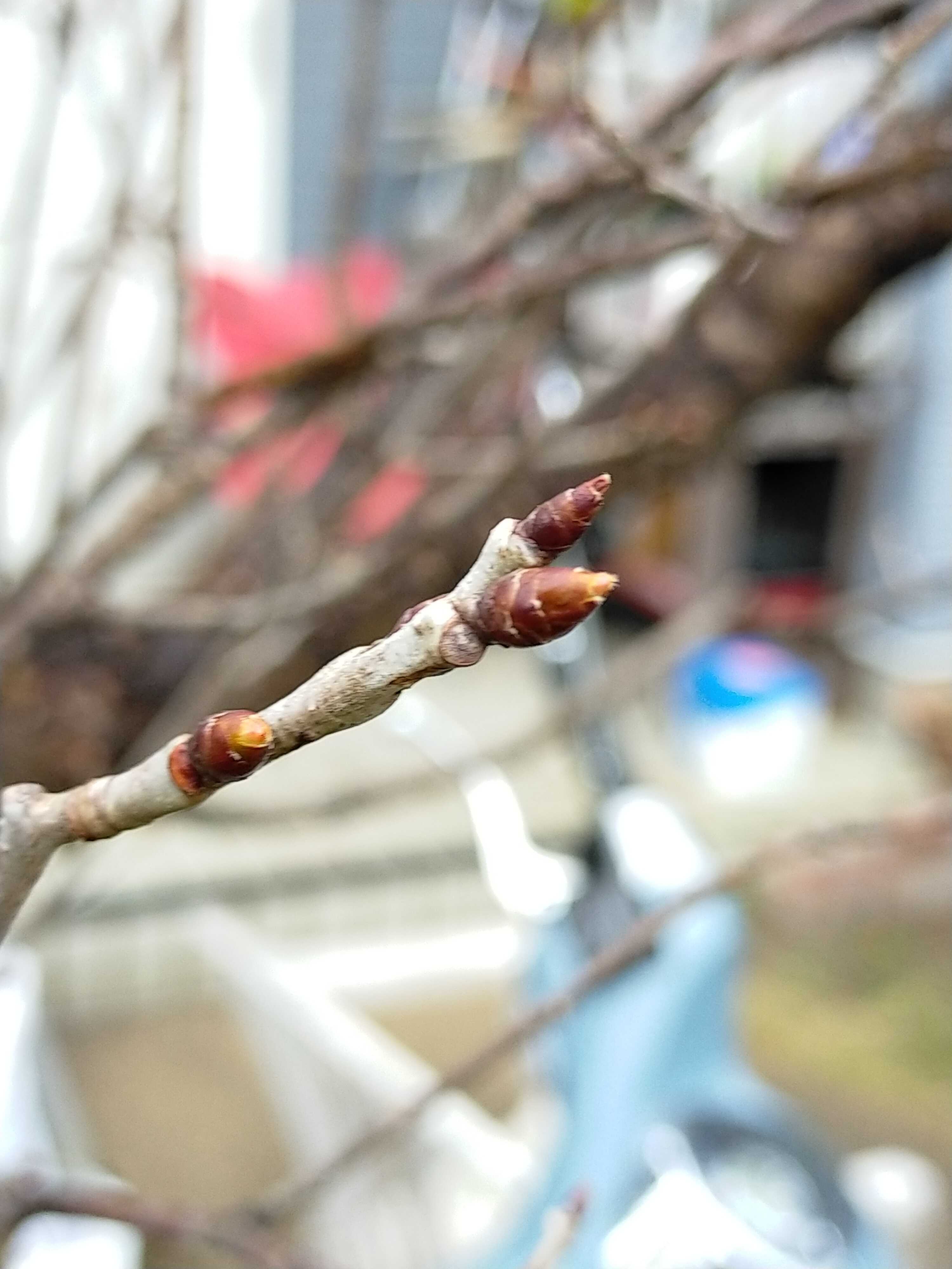 冬来たりなば春遠からじ今日は小雨ですけど暖かいですね。バラの冬剪定後もう少し残っていますが一休みです。なぜかアクセス数が増えたのはみなさん、バラの剪定に興味を持っているからでしょうね。鉢数51、と書きましたがもうあと20くらいは増えるでしょう。実は前回書いたようにバラは20数種類しかありません。剪定後の枝を挿し木していってこんなに増えたのです。冬剪定後の挿し木は毎年知り合いに無料で差し上げています。ただ挿し木苗は成木になるのに時がかかりますね。本来はノバラなどの台木に挿し芽していけばいいのでしょう。その後の成長が違いますね。バラの教室に通っていた頃一度挿し芽やったことがあります。スタンダード仕立で1メートル位の高いところで芽を継ぎました。その年はうまく芽が出て花もつけたのですが次の年、継いだ箇所で取れてしまいました。難しいですね。それ以来挿し木ばかりやってますがなかなか大きくなってくれないですね!ところで色んな草木の芽がでています。これはサクランボの芽です。毎年ソメイヨシノなどの桜に先駆けて花をつけ、其後の宝石のような赤い実は家族全員を喜ばせています。これは昨年かなり長い間花をつけ楽しませてくれたカンパニュラです。今年も咲いてくれることを期待しています。これはヤマシャクヤク植木市でひと芽1000円と言われて買ったものですが4つも芽をつけていますね。シャクナゲ白い花を樹木全面に咲かせてくれます。最後に剪定し残していて何度も上げたパパ・メイアン詳しい人によると冬バラは2週間は楽しめますよ、と言ってました。