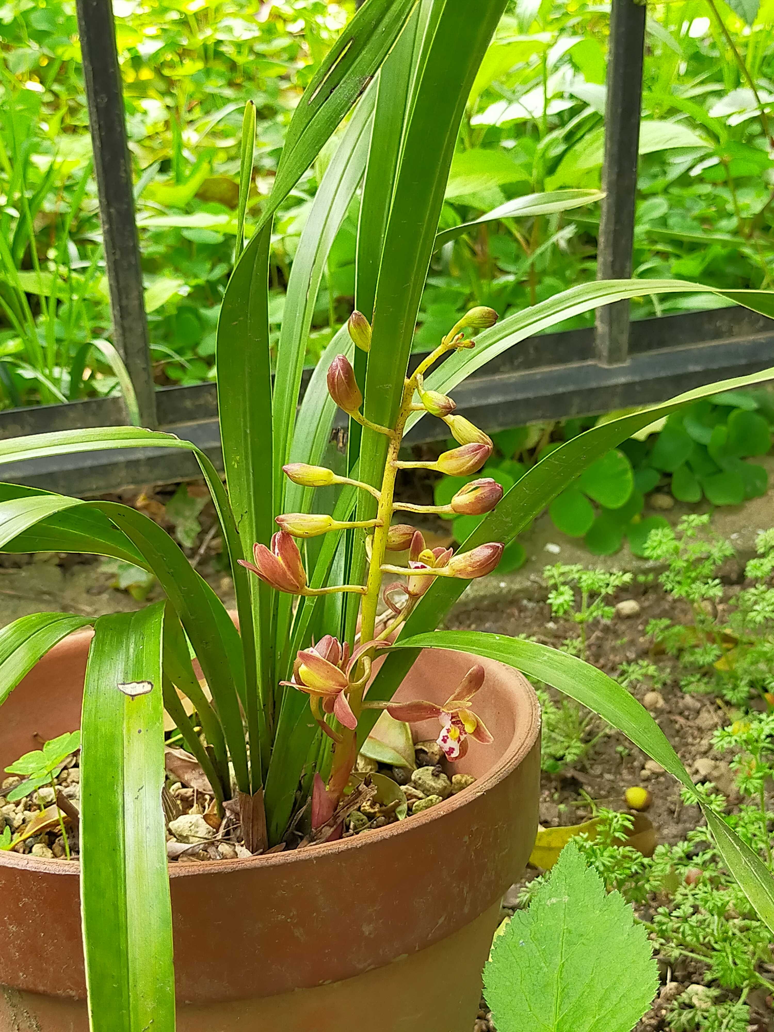 近所のおばあちゃんから頂いた春蘭が初めて花をつけました!3年前ぐらい、当洋蘭を趣味にしていたおじいちゃんが亡くなりました。そこのおばあちゃんが、あんた花が好きなごたるけん、これ植えてくれんね!と貰ったものです。2鉢の鉢に植えてさくらんぼの木の陰においていました。対して世話はしていません!グーグルレンズで調べたらキンリョウヘンという蘭のようです。結構気難しくてなかなか咲かないようです。それとこの花はミツバチを呼ぶようです。分巣のミツバチを呼ぶために使うそうです!紫蘭なんかとは花の付き方が違いますね。むしろシンビジウムの花の付き方に似ていますね。こんどおばあちゃんに報告しなくっちゃ!バラがいよいよ咲き始めています。紹介したかも分からないけどオールドブラッシュがもう満開になっています。そして好きなオールドローズ、スパニッシュビューティがあとチャールストンも。一気に紹介します!オールドブラッシュの写真はなかったですね。かわりに最後は、友禅きょうは水やりしただけほとんど庭仕事していません!
