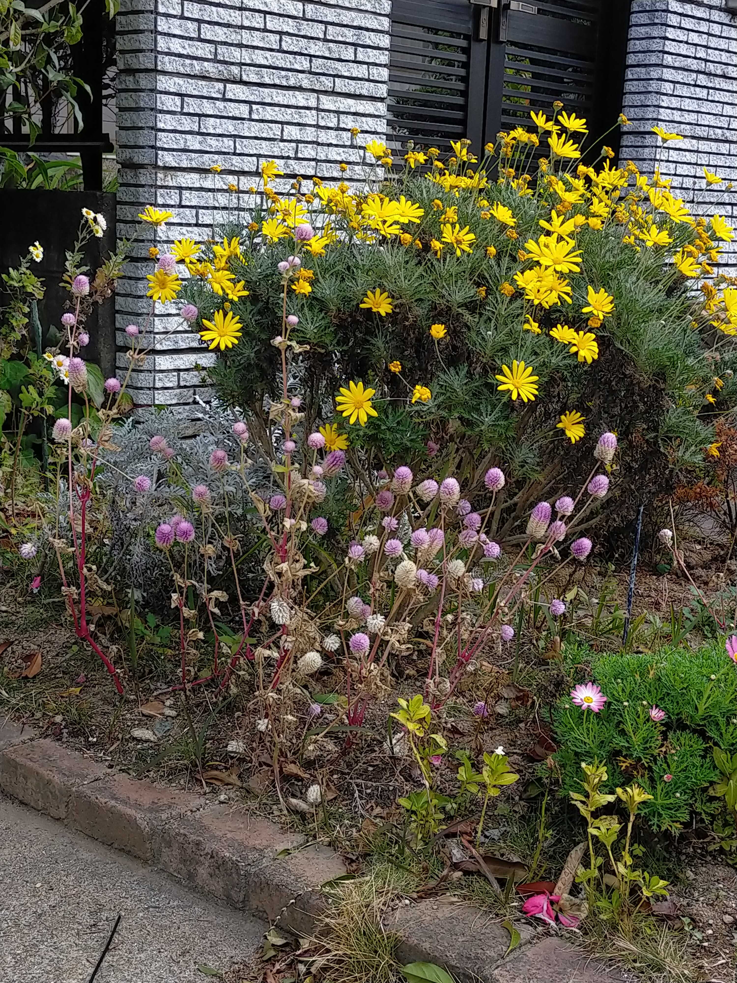 午前中結構忙しく動いて最後にホームセンターに寄ってネモフィラと矢車菊の種を買いました。ついでに今頃花を付けてるスカビオサを!確か9月に花を付けてるスカビオサ買って今は花が終わって種をつけててその種を数日前に撒いたところだけど今頃花をつけてるのですね!もっとも株が小さく10センチぐらいの高さで咲いていて、園芸種なんでしょうね!公園擁壁の草取りが終わった空いているところにネモフィラ、矢車菊の種、撒きました!これもダメもとですね。いつだったかうちの庭の端っこにネモフィラが一輪だけ花をつけていたことがあります。周りのうちで植えてるところはなかったのだけど。つまり丈夫なんだろうと勝手に想像して水遣りもできない公園に撒いたわけです。ダメもと、と言いながらおおいに期待しています!今日のうちの庭の花はもう終わりかけの千日紅