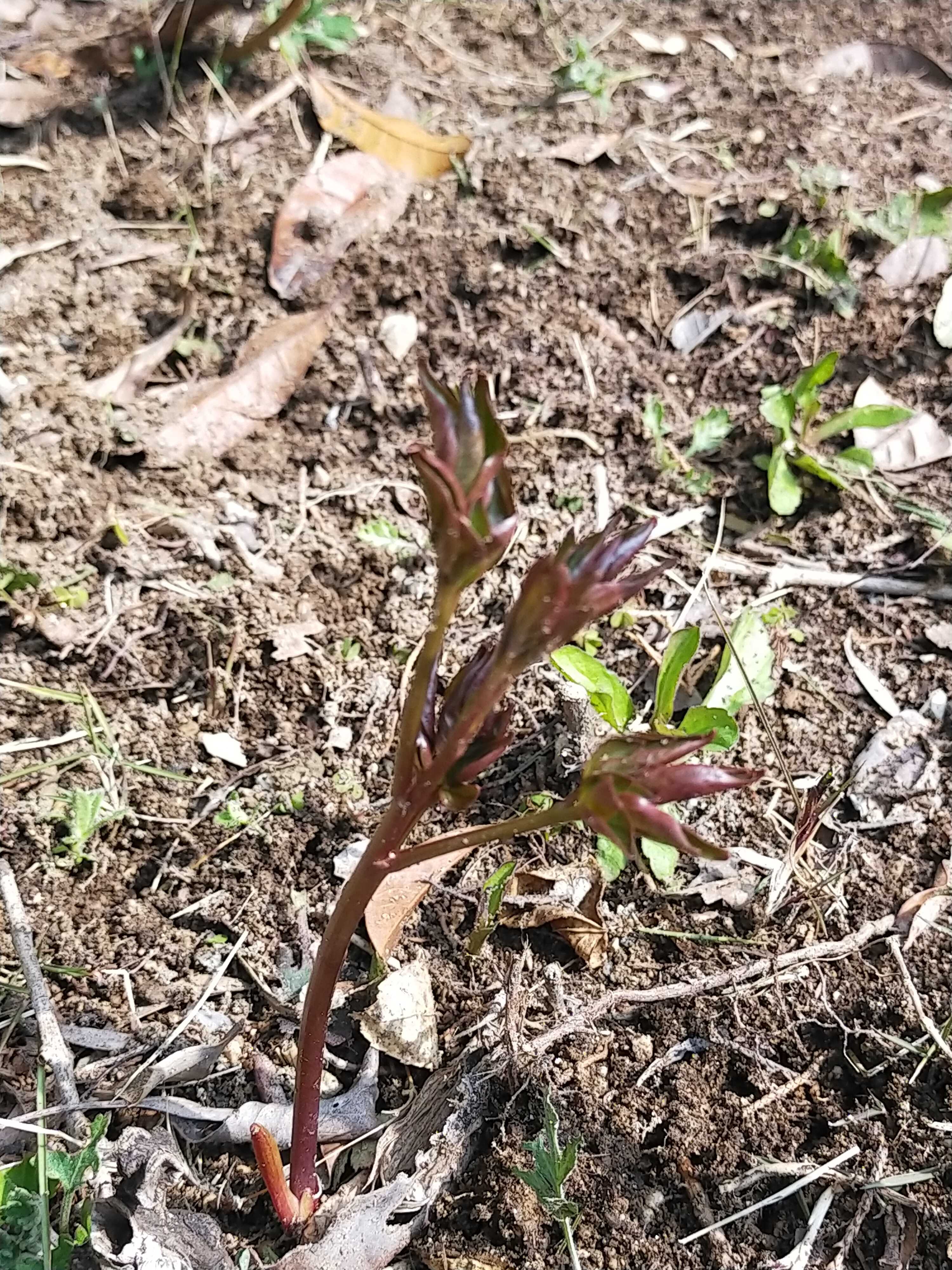 色んな樹木や草花の新芽が伸び始めています。新芽どころか梅はもちろん、サクランボの花や去年枝を大きく落としたミモザも端っこで花をつけています。春ですね。バラを中心にした庭だけど、昨年辺りから色んな草花にも手をだしています!ことに宿根草が多いですね。カンパニュラが芽を出しています!千日紅を自宅の庭と公園に昨年植えていました。ラインのオプチャ仲間からこぼれ種で千日紅の芽が出てると報告あったので植えていた公園を見てきました。自宅は掘り返してヤグルマギク植えています。するとこんな感じですね。ただ新芽の区別は付きませんね。昨年種から植えた千日紅はこんなふうでした。十文字に葉が出てます!難しいですね。昨年などは草刈り鎌で草取りをして宗像鹿の子百合の伸び始めようとしていた新芽を切ってしまいました。春の草取りは難しい!!
