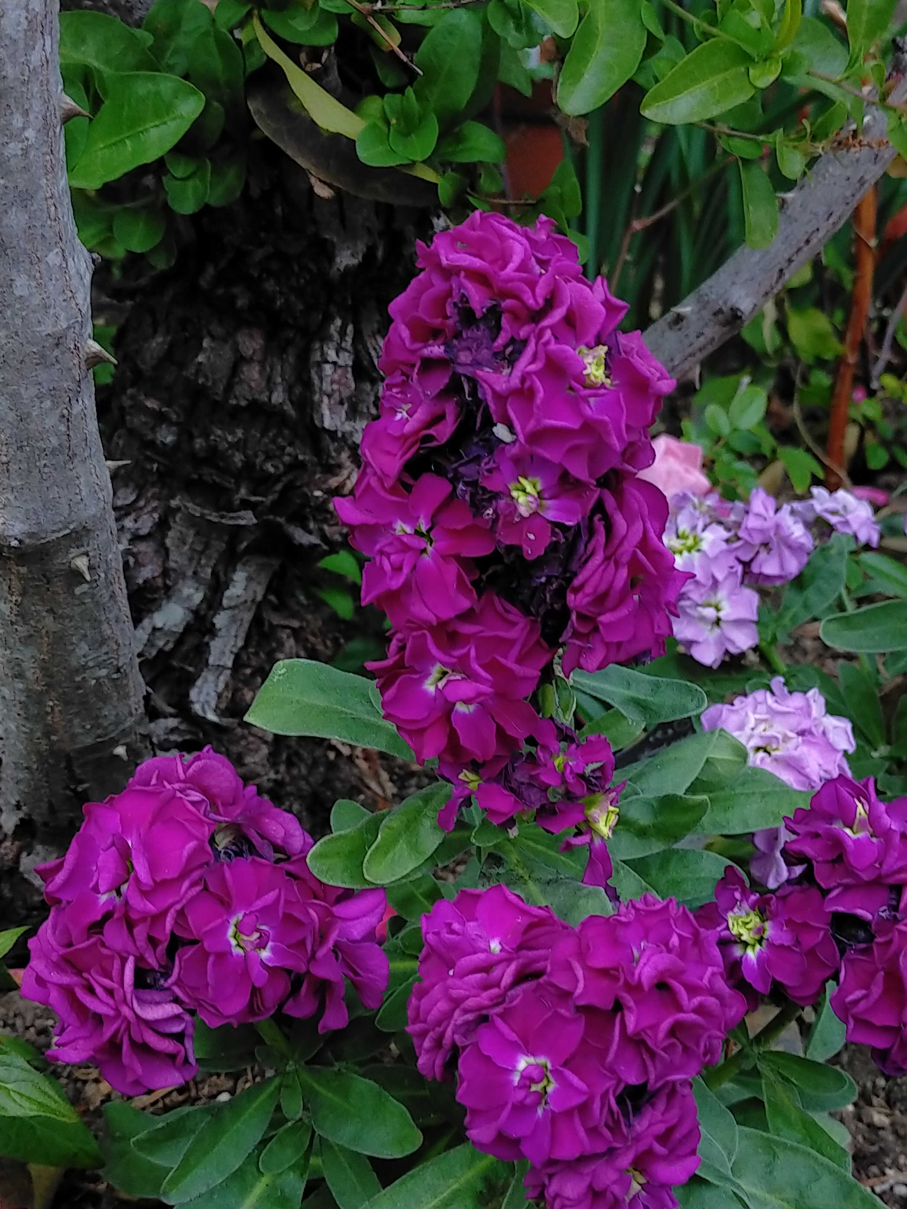 孫たちが帰って庭仕事する時間が取れました。つるバラの葉を落とし、剪定していきました。双芽残すのですかね。面倒になっていい加減に切っていきます。ついでに鉢植えにしているリンゴの木の剪定しました。リンゴ、テッポウムシが入っていました。薬をかけたらテッポウムシ出てきました。リンゴ、駄目かもしれませんね。3,4時間は庭仕事していたのだけどまだまだですね。バラの冬剪定2割ぐらいしか終わっていません。年越ししたバラ、パパ・メイアンを前回挙げましたが、やはり寒いためまだ3分咲き程度です。これは今が季節なのでしょう。ストックが咲いています。