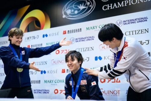 国別対抗戦 以下、日本代表選手◆女子 坂本花織(シスメックス)、三原舞依(シスメックス)◆男子 友野一希(上野芝ク)、佐藤駿(明大)◆ペア 三浦璃来、木原龍一組(木下グループ)◆アイスダンス 村元哉中、高橋大輔組(関大KFSC)ISU世界フィギュアスケート国別対抗戦2023公式練習が終了しましたインスタグラムではバックヤードも紹介中!https://t.co/n13GMOi2Zu#国別対抗戦 #WTTFigure #FigureSkate pic.twitter.com/s10nSgEiKr— 公益財団法人日本スケート連盟 Japan Skating Federation (@skatingjapan) April 12, 2023 佐藤駿、公式練習で4回転ルッツ着氷 宇野昌磨欠場で急きょ出場 国別対抗戦13日開幕スポーツ報知 / 2023年4月12日 11時51分 フィギュアスケートの国別対抗戦は13日から東京体育館で開幕する。 12日は会場で公式練習が行われ、男子の佐藤駿(明大)は、フリーの曲かけで4回転―3回転の連続トウループ、トリプルアクセル(3回転半ジャンプ)―1オイラー―3回転サルコーなどを着氷。練習終盤には、武器の4回転ルッツも降り、見ていた選手や関係者から拍手が沸き起こった。 佐藤は、右足首を負傷した宇野昌磨(トヨタ自動車)の欠場を受け、10日に急きょ出場が発表された。2月の四大陸選手権ではフリーで巻き返し、銅メダルを獲得した。 日本は8大会連続出場で、過去2012、17年大会を制している。佐藤駿、公式練習で4回転ルッツ着氷 宇野昌磨欠場で急きょ出場 国別対抗戦13日開幕 - 記事詳細|Infoseekニュースフィギュアスケートの国別対抗戦は13日から東京体育館で開幕する。12日は会場で公式練習が行われ、男子の佐藤駿(明大)は、フリーの曲かけで4回転―3回転の連続トウループ、トリプルアクセル(3回転半ジャンプ)―1オイラー―3回転サルコーなどを着氷。練習終盤には、武器の4回転ルッツも降り、見ていた選手や関…【全文を読む】佐藤駿、急きょ出場に「まじか!」あまりの驚きに「ご飯はちょっとノドを通らなかった」スポーツ報知 / 2023年4月12日 20時59分フィギュアスケートの国別対抗戦は13日から東京体育館で開幕する。12日は会場で公式練習が行われ、男子の佐藤駿(明大)は、2回の練習で、ショートプログラム(SP)と、フリーの曲かけを行い、念入りに確認した。 佐藤は、右足首を負傷した宇野昌磨(トヨタ自動車)の欠場を受け、10日に代替出場が発表された。予想していなかったまさかの出来事に、「『まじか!』ってなって、ちょっとその日のご飯はちょっとノドを通らなかったんですけど・・・」と驚きが隠せなかったという。 すでに靴を替え、来季に向けたプログラムに着手していた中で、急きょ決まった国別対抗戦出場。急ピッチで大会に仕上げ「4(回転)まで戻すことができて、今日の練習で(4回転)ルッツを一応跳ぶことはできたので。まあ、ギリギリ間に合った。体力面が少し大丈夫かなっていうところはあるんですけど、最後まで全力で滑り切れれば」と力を込めた。佐藤駿、急きょ出場に「まじか!」あまりの驚きに「ご飯はちょっとノドを通らなかった」 - 記事詳細|Infoseekニュースフィギュアスケートの国別対抗戦は13日から東京体育館で開幕する。12日は会場で公式練習が行われ、男子の佐藤駿(明大)は、2回の練習で、ショートプログラム(SP)と、フリーの曲かけを行い、念入りに確認した。佐藤は、右足首を負傷した宇野昌磨(トヨタ自動車)の欠場を受け、10日に代替出場が発表された。予想…【全文を読む】本日の写真佐藤駿選手、公式練習でアイリン手袋をお使い頂いていたようです⛸️ありがとうございます😆明日からの国別対抗戦、がんばってください✨#国別対抗戦#アイリンショップhttps://t.co/ASufSy9PGp— アイリンNEWS (@_irenenews) April 12, 2023 #国別対抗戦 練習後 #佐藤駿 選手「今日の練習でルッツも一応、跳ぶことはできたので、ぎりぎり間に合ったかなという感じ。あとは体力面が大丈夫かなと」https://t.co/98EYlMMJaG— HITOSHI KURASAWA/毎日新聞 (@hitkurasawa) April 12, 2023 かなだい「奇跡的だなって思う」 国別対抗戦・アイスダンス前日練習 https://t.co/RjftG1Qj2c— 毎日新聞ニュース (@mainichijpnews) April 12, 2023 友野一希くん発売中の #nonno5月号 に登場してくれた #友野一希 さん。大反響にお応えし、特別に未公開カットを一挙大公開✨カメラ散歩や、朝の光を浴びながらキラキラと輝く友野さんなど…競技中とはまた違う表情に夢中になってしまうカットばかり📷本誌とともにお楽しみください📚#国別対抗戦2023 も応援🟥🟥— ノンノ/non-no (@nonno_staff) April 12, 2023 佐藤駿くんにほんブログ村 宇野昌磨、国別対抗戦を欠場 足首の回復間に合わずAFPBB News / 2023年4月10日 15時24分【AFP=時事】3月のフィギュアスケート世界選手権(ISU World Figure Skating Championships 2023)で、男子シングル連覇を果たした宇野昌磨(Shoma Uno)について、日本スケート連盟(JSF)は10日、足首のけがのため13日から始まる世界国別対抗戦(ISU World Team Trophy in Figure Skating 2023)を欠場すると発表した。代わって佐藤駿(Shun Sato)が出場する。 宇野は、世界選手権の前日にすでに痛めていた足首を負傷した。6か国