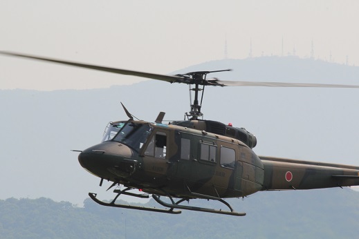 防府北基地にえける航空ショーの写真です。迫力ある自衛隊のヘリコプターです。間近で見られる機会は、航空ショーならではと思います。