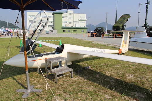 写真は、山口県防府市の北基地で開催された航空ショーの一場面です。グライダーも展示され、操縦席の様子も見学できました。また、後方には、自衛隊の特殊装備を兼ね備えた車両も展示されていました。画像を拡大して、ご覧下さい。