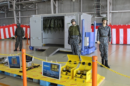 写真は、防府北基地で開催された航空ショーの一場面です。自衛隊員の出動服や装備品がなどが展示されていました。マニアにとっては、嬉しいのではないかと思いました。