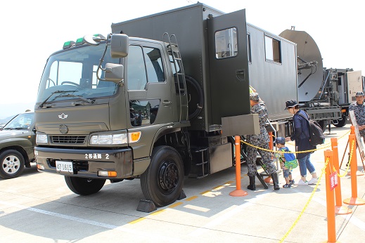 山口県防府市北基地における航空ショーの写真です。自衛隊の特殊車両です。実際の活動時の様子が見たいと思いました。