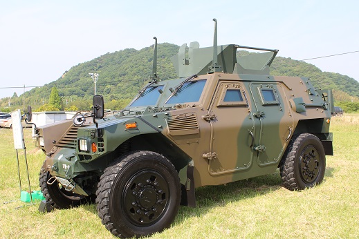 山口県防府市北基地で航空ショーが開催された時の自衛隊の展示車両です。頑丈そうな外観と装甲車のような雰囲気が魅力的でした。窓が小さくて、迷彩色の車両カラーも素敵でした。 画像を拡大して、ご覧ください。