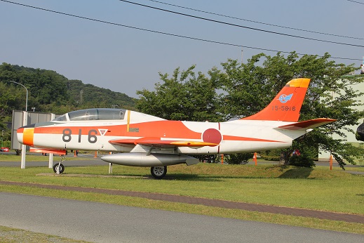 防府北基地の航空ショーの続きの写真を掲載します。写真は、防府北基地内に展示してある飛行機の一機です。赤色が映える飛行機です。