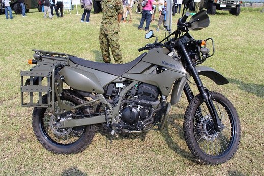 防府北基地における航空ショーの一画像です。自衛隊の公用車バイクです。250CCのバイクであり、ナンバープレートは、一般のバイクと違います。