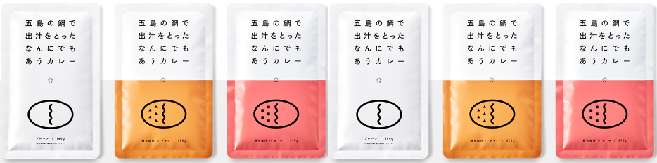 五島産の鯛でとった出汁を使用したレトルトカレーです。26年間長崎の洋食店で腕をふるっていたプロの料理人による味を、最新加工技術を用い、できたてのまま閉じ込めました。ほんのりとした酸味の中にもピリッとした辛味を感じられる、深みのある味は、どんな食材とも合わせやすい、まさに”なんにでもあう”カレーです。そのままカレーでも