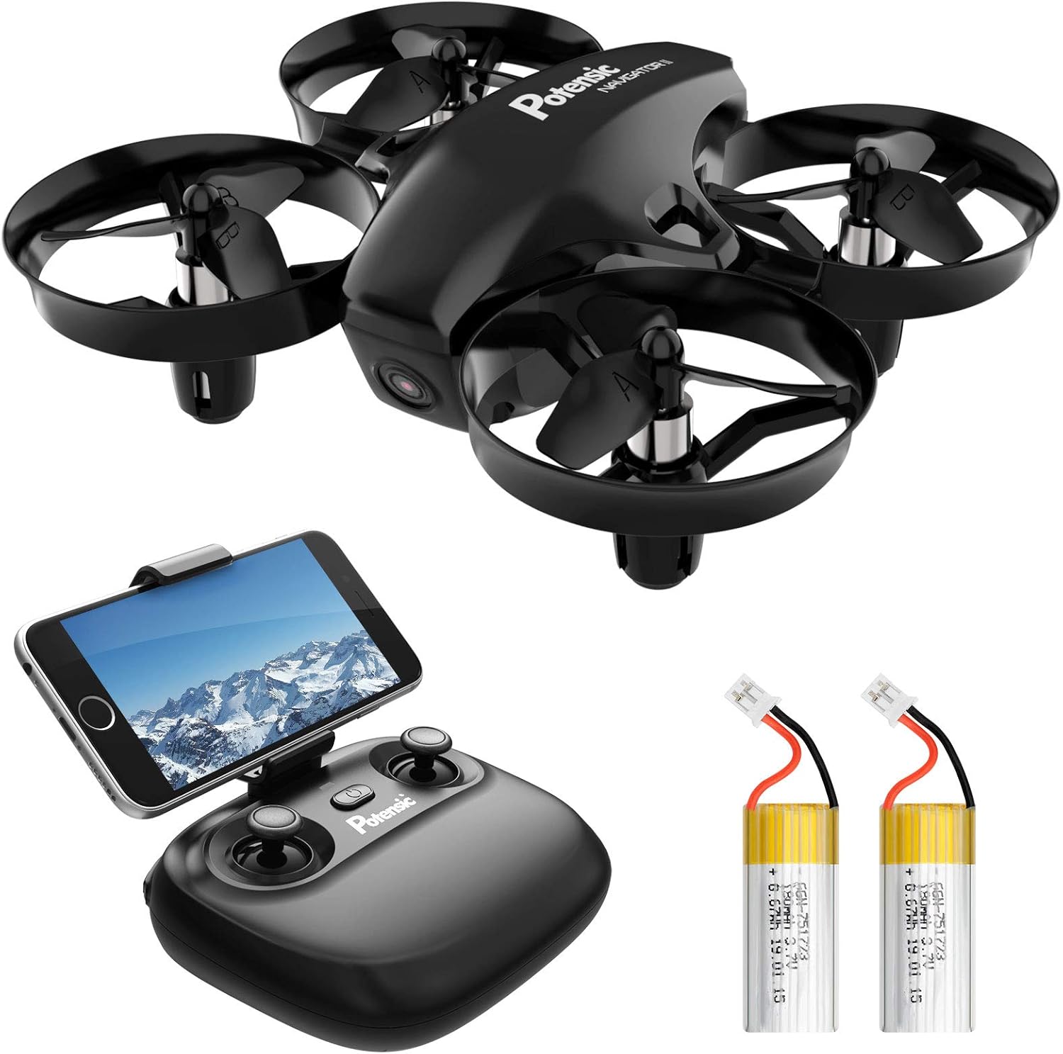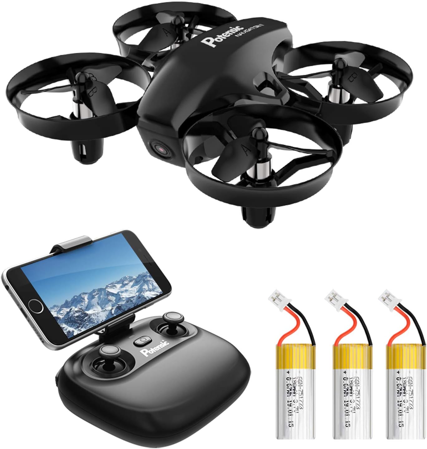 Potensic ドローン カメラ付き 小型 200g以下 こども向け 室内向け 高度保持 バッテリー2個 HD空撮カメラ WiFiリアタイム ヘッドレスモード 2.4GHz 4CH 6軸ジャイロ マルチコプター こども向け 初心者向け 3D VRサポート 日本語説明書付き 国内認証済み