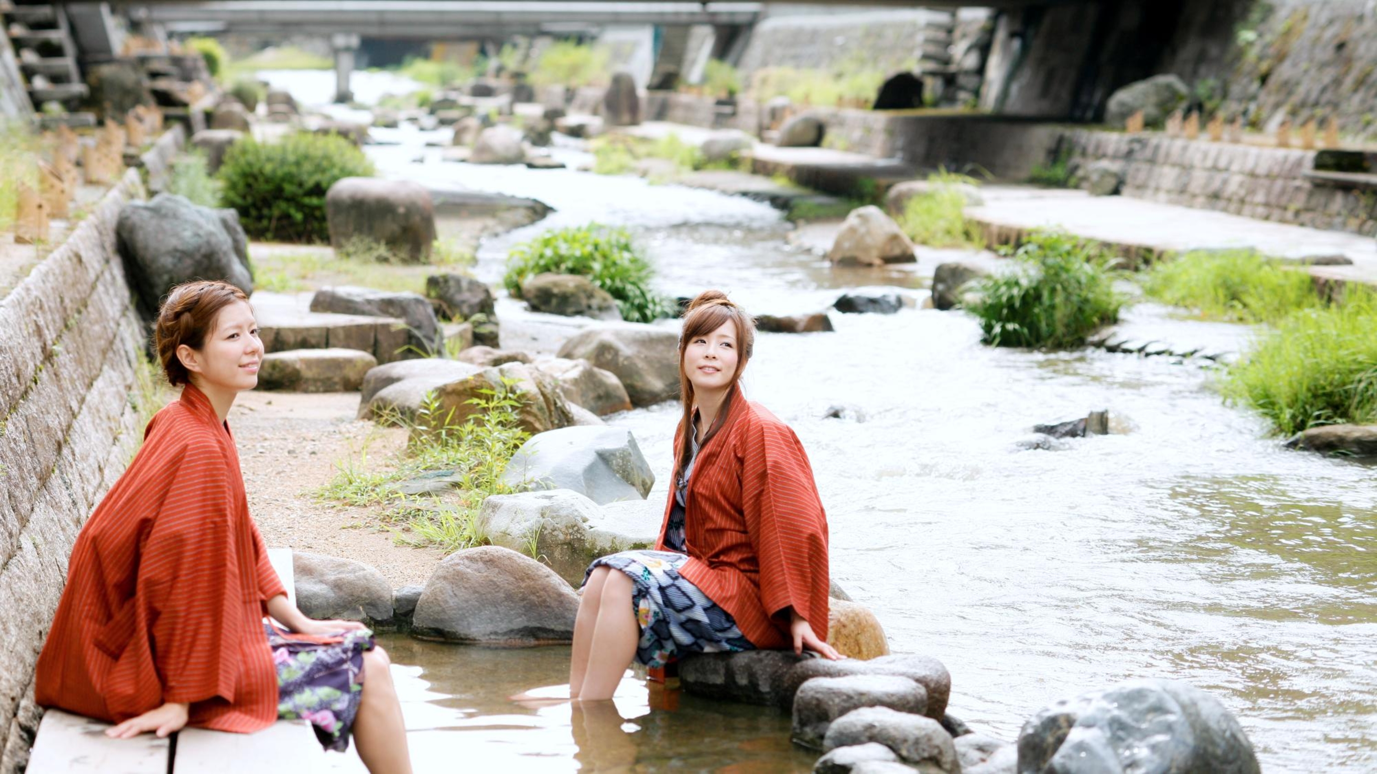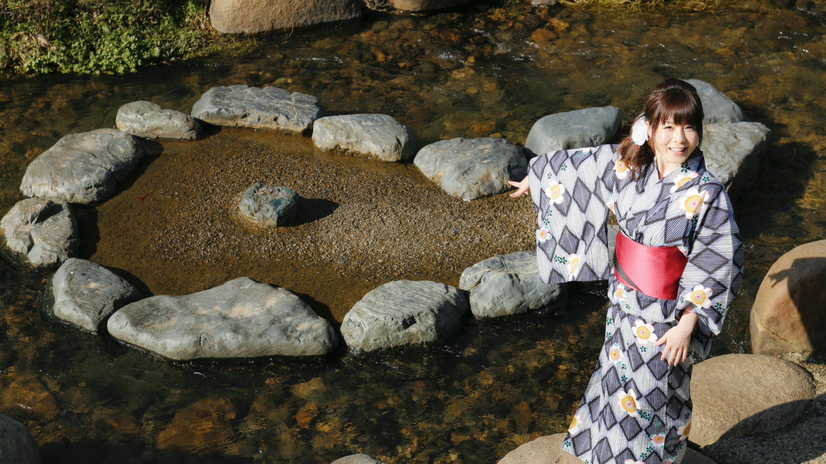 【足湯】ゆーゆの前の足湯。冷え性の方は足を温めてください!足湯に入ってのんびりと温泉街散策