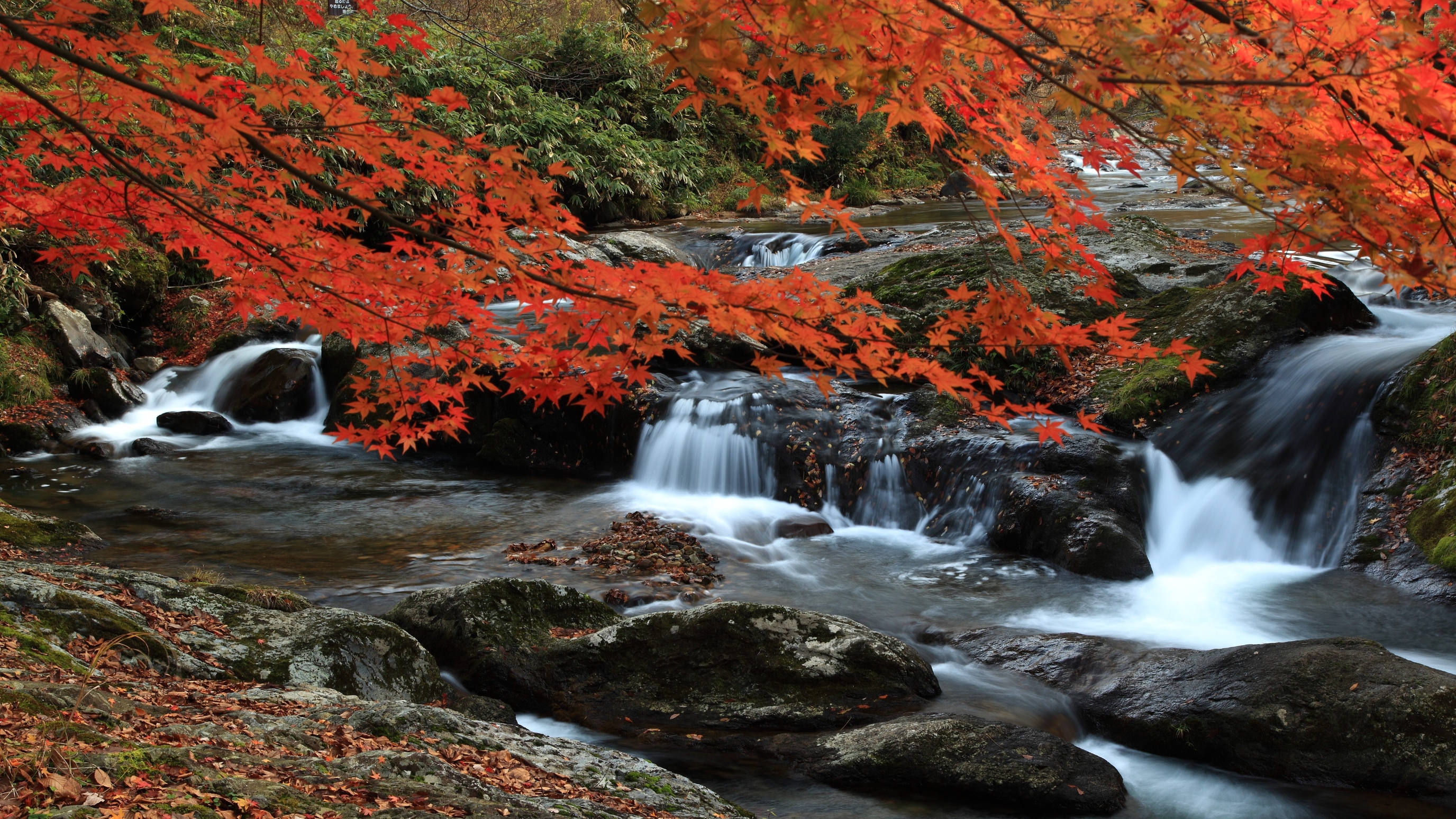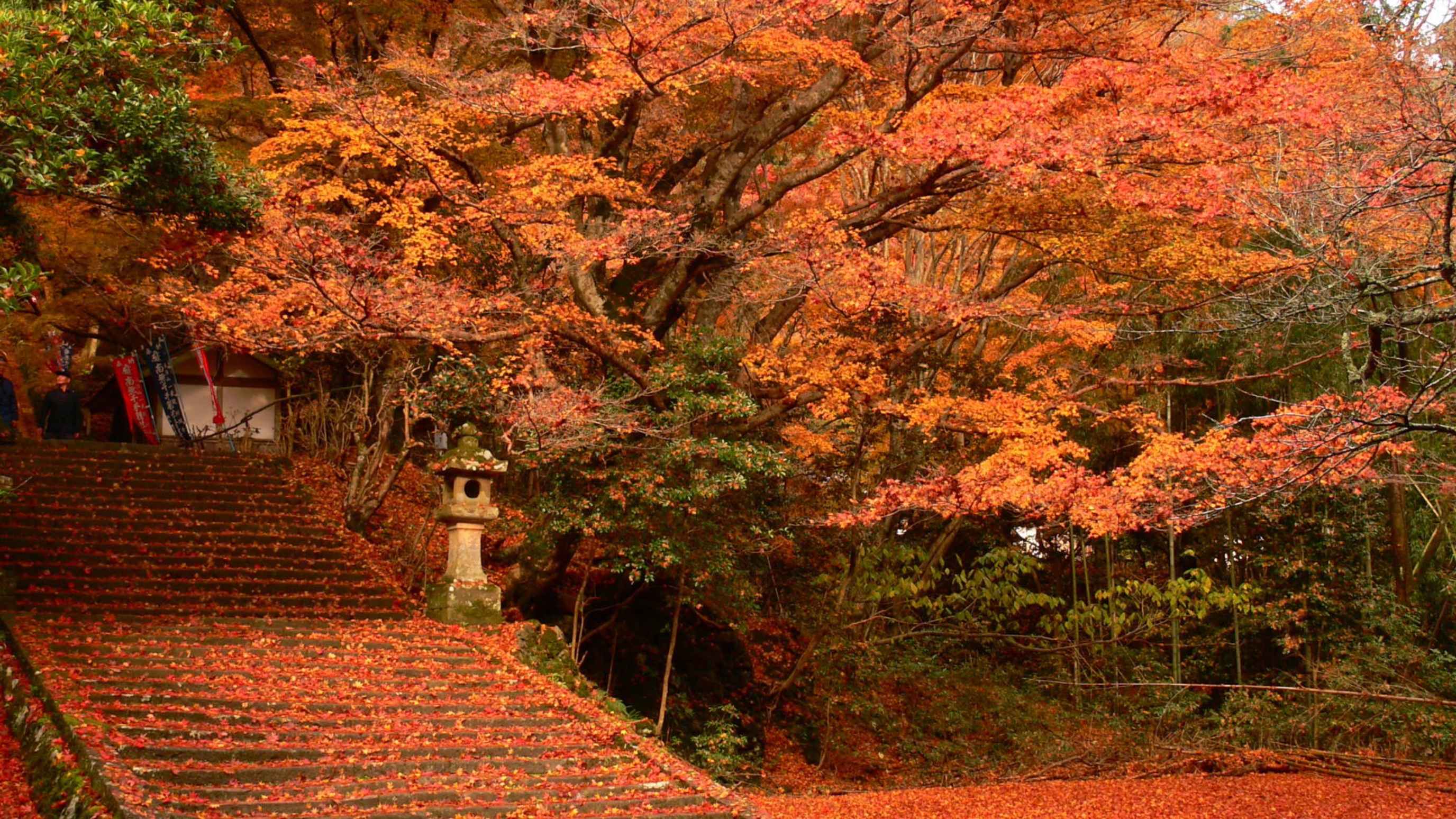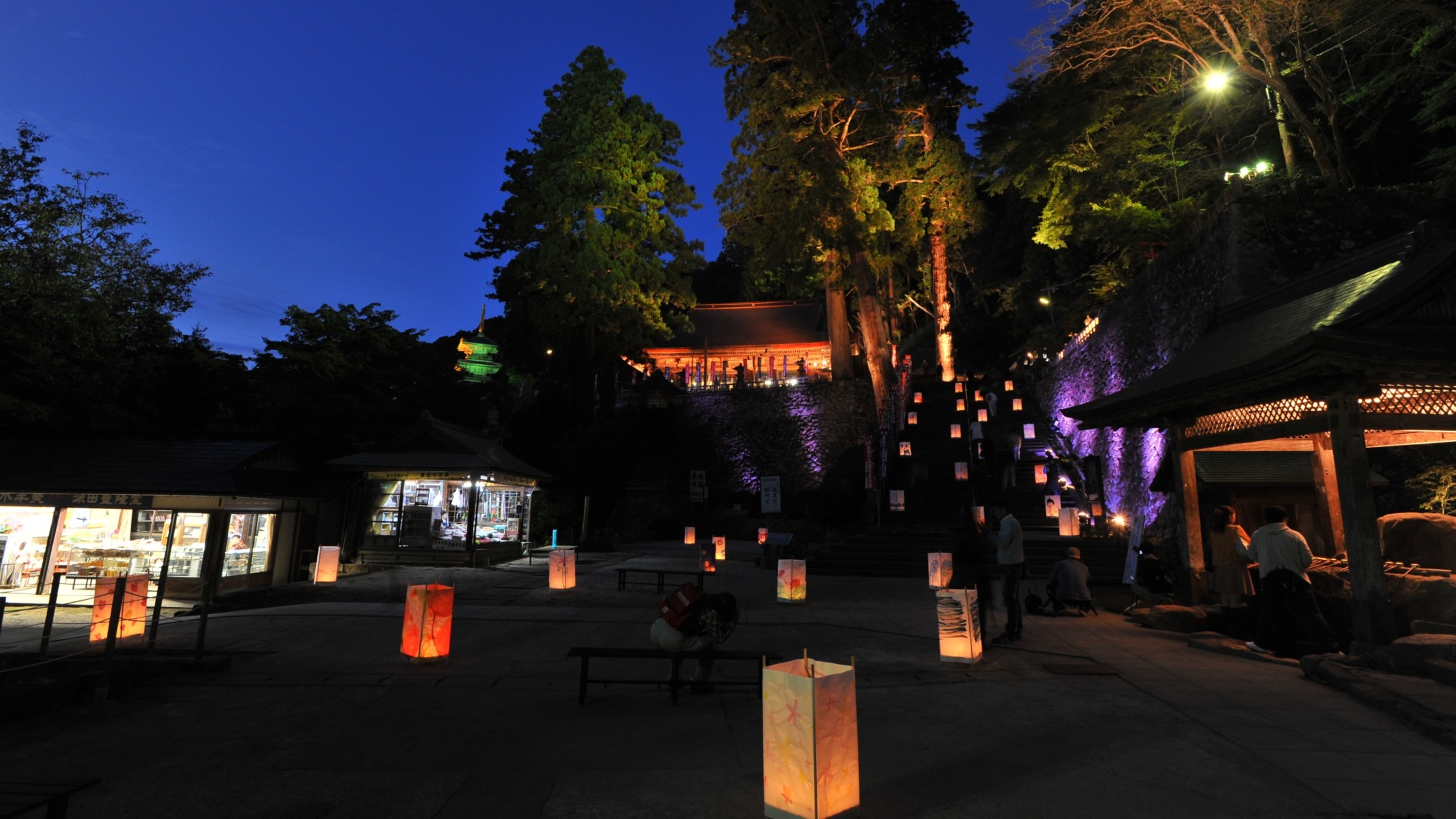 ライトアップされた紅葉。鮮やかに彩ろられた光景が広がります