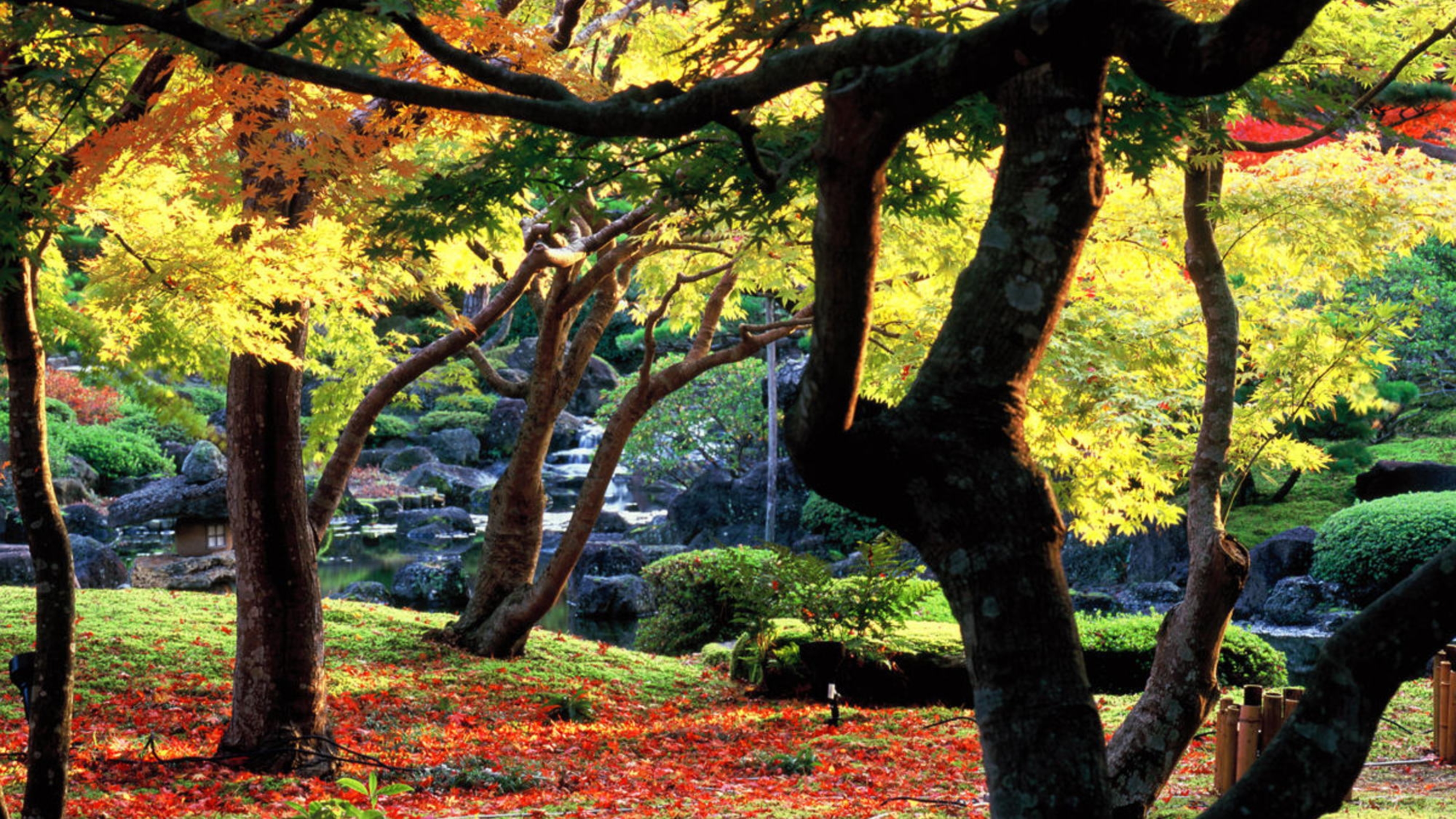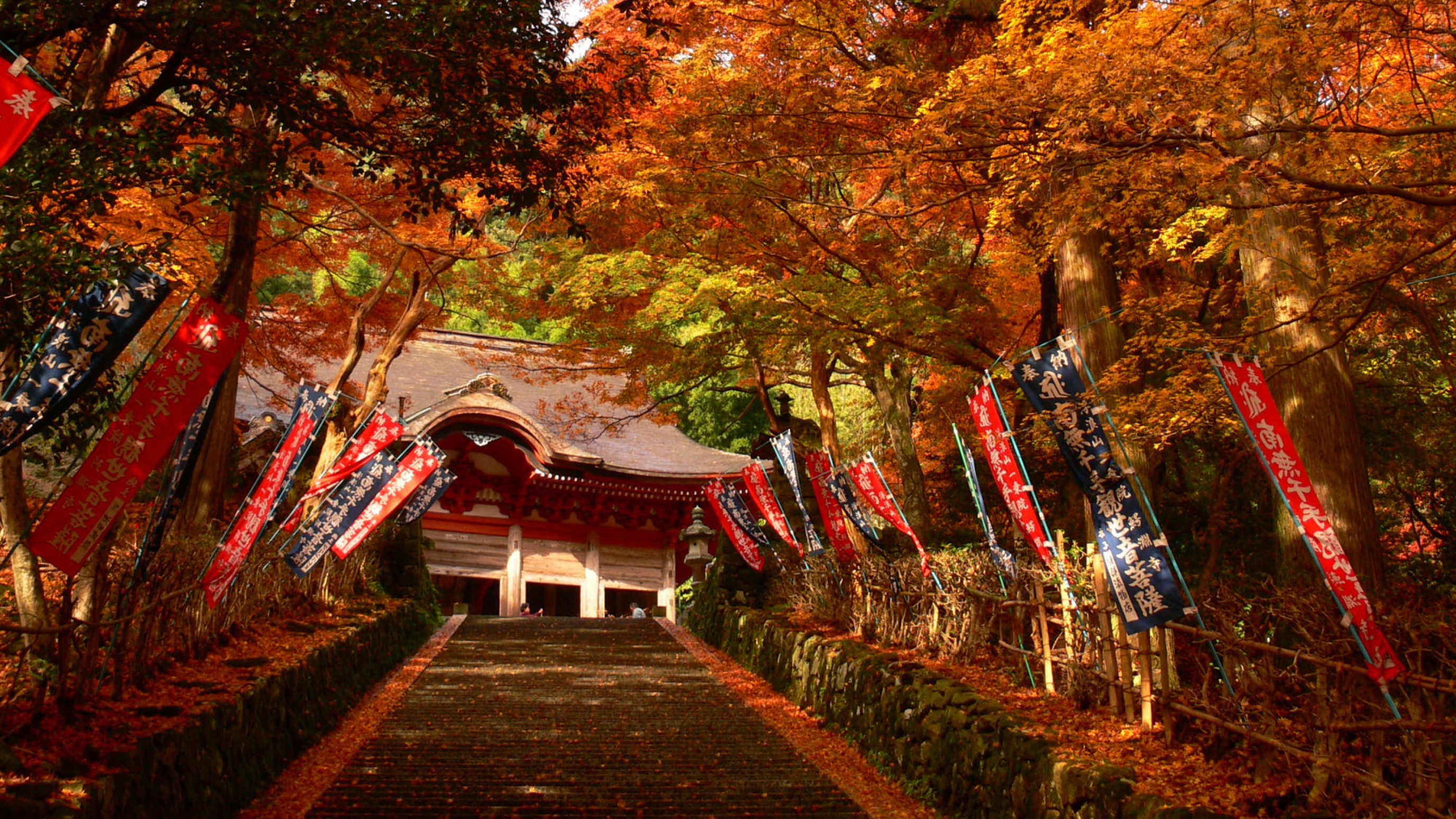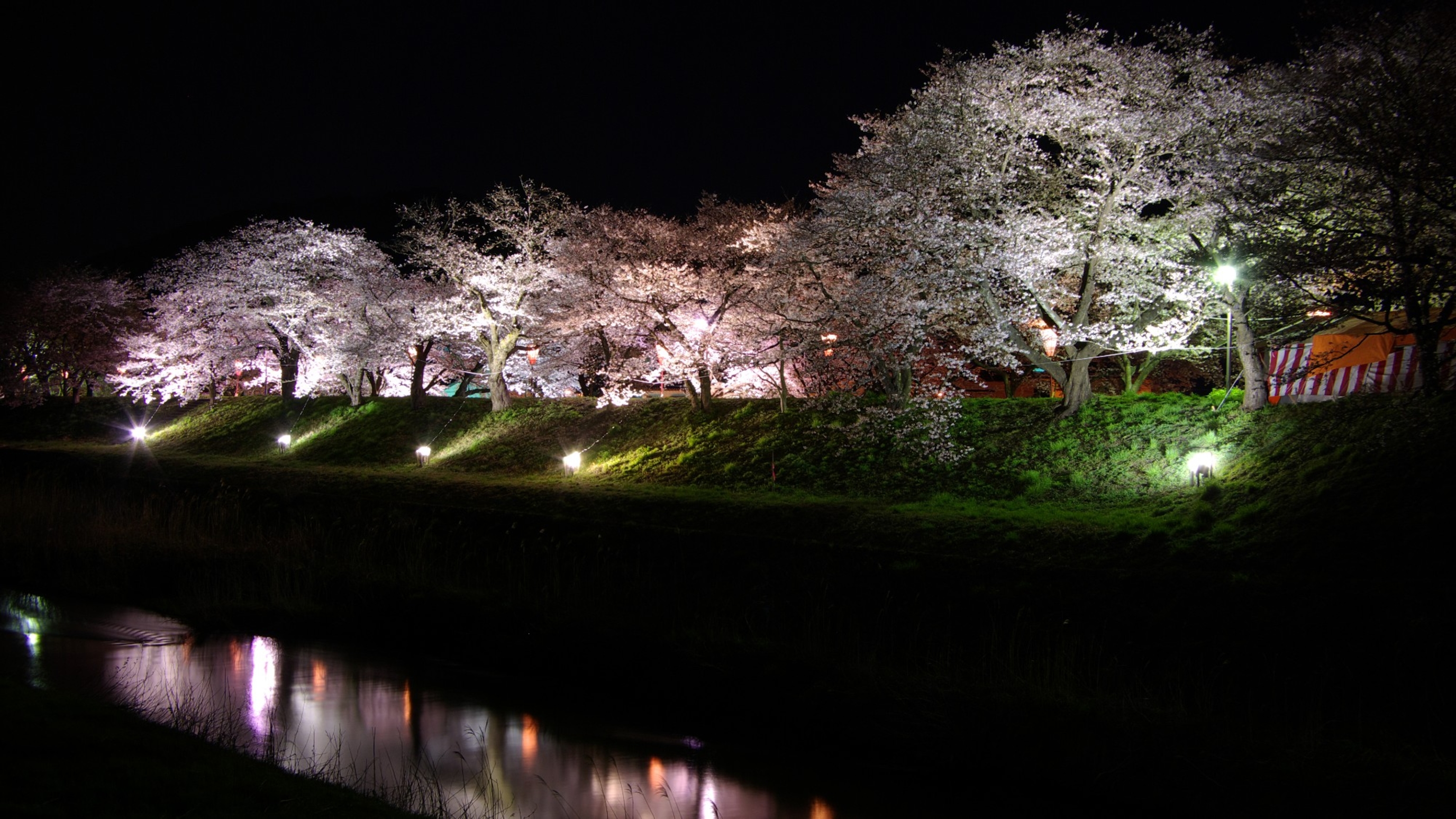 ライトアップされた紅葉。鮮やかに彩ろられた光景が広がります