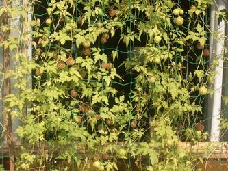 張って蔦を楽しみましたが、今年は昨年の種がこぼれて直接