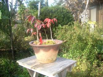 ミニ盆栽のハゼも土遊びで3年前に植えました。