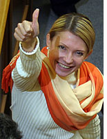 ティモシェンコ、そのトレードマークだったひっつめ三つ編みを解いて、通常のロングヘアにして注目を集めていた。あの髪型、ウクライナ伝統のものだそうで、革命の象徴のようなものだった。先月初めに、ユーシェンコ大統領から他の全閣僚ととも解任されてしまったことと何か関係があるのかな……。