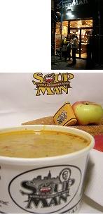 そしてこの年中オープンの"Soup Man"。店長に怒鳴られたかというと実際は逆でした(笑)。店員さんとスープができるまで・・と雑談していたら、いつまで経っても品物が出てこない・・。「スープは?」と聞いたら、左端で黙っていた店員さんが「できています・・」とボソッ。店長さん(写真上右端の人)が「お待たせしてすみません・・」と言いながらドアを開けてくれました。
