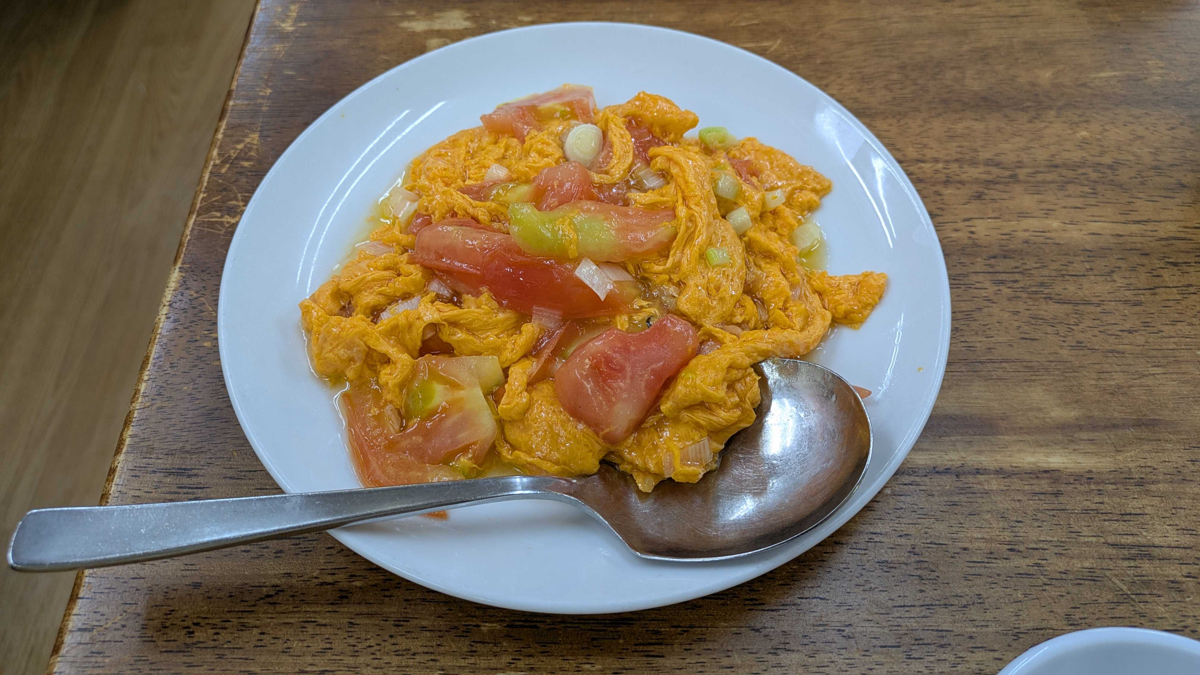 何にしようか迷ったけど、前回玉子モノ食べた記憶があったから前回の投稿で確認して今回はトマト玉子炒めにした。