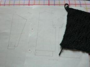 手あみでウエアものを編んだことのある人なら誰でも経験する悩み。それは、作品の重量がどうしてもズッシリ重たくなること。防寒が主たる目的の場合は重くてもよいのですが、普段気軽に着たいと思うのなら、重たくなるのはできれば避けたいもの。しかし、手あみの場合は編み地に厚みが出てしまい、その分重たくなってしまいます。とある本には、こんなデータが載っています。毛糸使用量の目安:長袖プルオーバー婦人中寸…320g(中細)、450g(並太)紳士中寸…400g(中細)、560g(並太)長袖カーディガン婦人中寸…370g(中細)、520g(並太)紳士中寸…460g(中細)、640g(並太)これはおそらく、棒針メリヤス編みで編んだ場合の目安だと思います。並太毛糸は中細毛糸の大体4割増しぐらいになっています。また、模様編みにして編み地が厚くなると、糸使用量はその分多くなります。透かし模様はメリヤス編みとそれほど変わりませんが、アラン模様などになると大体5割増しぐらい。さらに、素材によってもだいぶ変わってきて、綿・麻は毛に比べて密度が大きいので重くなります。ちなみに、一昨日の記事で写真を載せたプルオーバーは、合太毛糸のメリヤス編みで、約500g。一方、同じような合太毛糸でも、交差編みをふんだんに使用した長袖カーディガンは800gでした。まぁ、これぐらいの重さだったらまだ許せますが、さすがに1000gを超えるとなると、かなり躊躇します。いま、とある課題で、自分サイズの棒針編みプルオーバーを編もうとしています。胸元にとある技法を入れるのがテーマで、それ以外の部分はなるべくシンプルにしたいと思っています。けれども、単なるメリヤス編みではつまらない。じゃあ、あまり大げさにならない程度に地模様を入れよう。メンズは着くずれ厳禁だから、できれば交差や引上げを入れたものにしようか、と思ってスワッチ(試し編み)をいくつかしてみたのですが…使用糸:スキー ベビーアルパカ(40g巻き80m)使用針:棒針7号15cm四方のゲージ、重さが17.0g。製図上のこの編み地の面積が10200平方cmですので、これだけで770g。これに加え、胸元に入れる技法の分が入ると、全体は900g近くになってしまいます。…重たい。うーん…計画を練り直したほうがよさそうです。方法としては、1.糸をもう少し細いものにする2.ゲージが詰まらない模様にする(表目・裏目の併用は避ける、引上げ・交差を少なくする)3.製図上の面積を少なくする(丈を短くする、本人が痩せる(?))ただ、先述のとおり、メンズものでは着くずれは禁物なので、2.はできれば条件から外したい。そうでなければ、リネンなどの素材を引きそろえるとか。当分はこのような感じで悩むことになりそうです。ベビーアルパカ並太 スキー毛糸