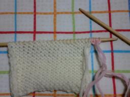 夏風邪、だいぶよくなりましたが、咳は残るんですよね…まだしばらくはマスクが必需品となりそうです。さて、少し前に話が出たI-コード。いつか新宿の某書店で買った洋書 "THE ESSENTIAL GUIDE TO COLOUR KNITTING TECHNIQUES" に、I-コードの応用例がいくつか載っていました。そのひとつが、I-コードを編みつけながら伏せ止めする方法(Binding Off with I-Cord)。1) End with a right-side row. At the beginning of the next row (wrong side), cast on 3-6 stitches for the cord. *Knit until 1 stitch remains of the cord, slip 1 knitwise, knit 1, pass slipped stitch over (this works the last stitch of the cord together with the first stitch to be bound off).2) Slip all the stitches back to the left needle purlwise. Do not turn.3) Repeat from * until all stitches across the row have been used and only the cord stitches remain. Cut yarn and pull end through all stitches. This is usually most successful with 3-4 stitches for the I-cord. For a quicker join, substitute K2tog tbl for the cumbersome skp.簡単にいえば、こういうことでしょう。編み地の裏の段で、編み地の右隣にI-コードの作り目(ここでは4目)をセットする↓このまま、I-コードを編むのですが、I-コードの最後の目と編み地の1目めを右上2目一度で編む。右の棒針の目を左に移して、再びI-コードを最後の目を除いて編み、I-コードの最後の目とその左隣のにある編み地の目を右上2目一度で編む。くりかえし。すると、編み地の上端にI-コードが横になってくっついたような伏せ止めができあがります。これ、裾の見返し仕立ての部分に使ったり、縁編みの飾りにしたりと、いろいろ応用が利くような気がします。くるんとして可愛らしいかも。THE ESSENTIAL GUIDE TO COLOR KNITTING TE著者:MARGARET RADCLIFFE価格:2,930円(税込、送料込)楽天ブックスで詳細を見る