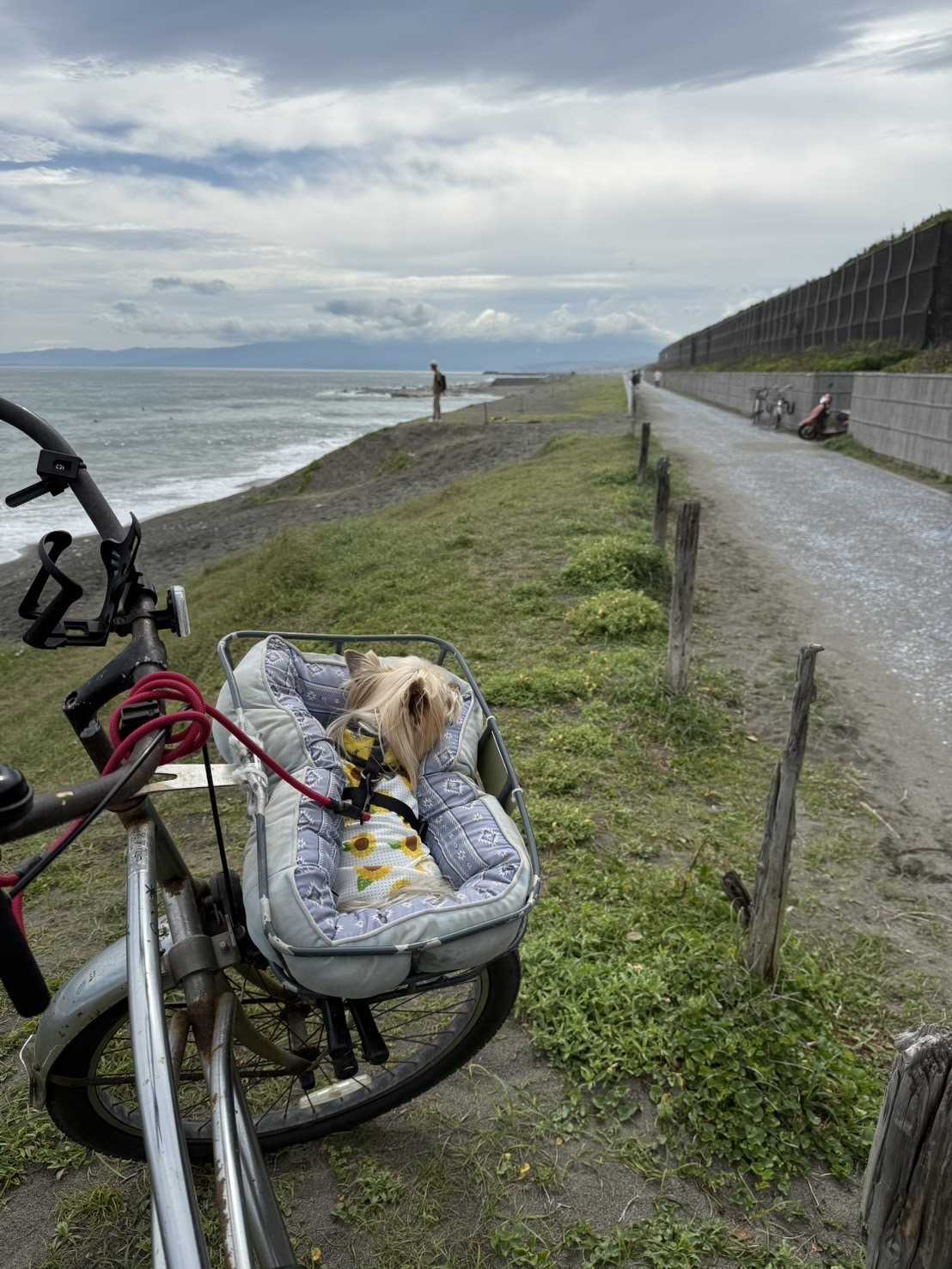 17日 ☔️雨風強い🌪️朝7時現在気温、18℃予想最高気温、26℃湿度84% 天気予報通り.本降りの雨☔最近の天気予報は良く当たります。こんな日の洗濯はドラム式が活躍してくれますが.音が煩いのと電気代も心配です。ゴミ出しが自宅前の.個別式に変わりとても楽になりました。🗑️そう思っていたら..御近所のゴミ箱の蓋が閉め切って無かったみたいでカラス🐦⬛達がやって来て荒らされており..追い払っても直ぐにやって来て最近のカラスは.強くてズル賢いし人を怖がりません。蓋を注意しないといけません。お外のコ達が誤解されたらいけないので家の方に写メを撮って御説明しました。組長.見廻り頑張ります。🫡昨日 トリミング前ボサボサ最高傑作ながら..お散歩♪観て頂けたら幸いです。サザンビーチ茅ヶ崎と茅ヶ崎海岸の境い目が何処なのか?今だに判断がつかない.母です。🙇♀️サザンビーチ茅ヶ崎 お友達と御挨拶お友達は.ホワイトテリア犬とても綺麗なワンコでした。🐩ビーチでは.ヨガ教室🧘気持ち良さそう〜。お散歩ワンコやシニア黄昏れ族の方達も楽しそう♪今回も随分と汚れてしまい一度.家シャンプー🧴したのですが..それが裏目に..ドライアーが難しいです。ごめんなさいね、モアナさん。🙇♀️「ちょっと 恥ずかしい思いさせないで。」🐶 厳しい表情の.モアナさん お鼻も膨らみ気味 😤 我が家のベランダに、マリアカラス一輪 強風に耐えて咲いていました。 明日が良き日であります様に。 お天気回復します様に。にほんブログ村にほんブログ村にほんブログ村にほんブログ村