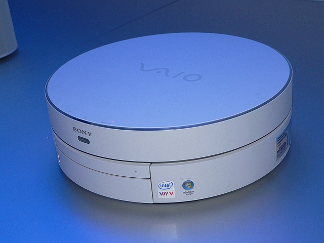 こんにちはtkです年明けからサキュ~君に更新を任せっぱなしになってしまっていました。勉強していたのでブログの更新まで時間をまわすことがほぼ不可能だったわけです。睡眠時間は8時間とったりとか午前8時に寝たら3時間後に起こされたりとか・・・今日はしっかり寝たいと思います。ちなみにいつも見ているブログやニュースサイトのRSSの巡回などの時間は確保していました。(勉強道具の横にノートパソコンを置いているわけですが・・・)で、その中にあったとあるパソコン・・・?発見したのはITmedia +D内の記事にて少し前、Mac miniがマウスもキーボードも付けない状態(本体のみ)で発売されデザインが受けたらしく結構売れましたが、SONYは四角ではなく円柱を選んだようです。円柱にしたのはデザイン的にはよいのですが場所を無駄にとってしまいがちになったり置く方向が固定されたりと机の上におくことはあまり出来ないデザインです。おそらく実際にはリビングにおくことを想定しているのでしょう。(SONYはリビング向けパソコンを少し前から出しているらしい)このパソコンだと「箱から出したら転がっていく」とか「上に物をのせている」なんて話を聞きそうです・・・。