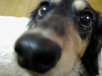 カメラ嫌いなのに、今日はどアップで撮らせてくれました。 私もゴロンと寝転んでいたし、まったりした雰囲気が良かったのかもしれません。とにかく今日はとてもかわゆい(親バカな!)よい写真が撮れました!カメラが嫌いなのは、子犬の頃に、フラッシュをビシバシ浴びせたから・・・ということで間違いないでしょう。それ以来、カメラを向けるとソッポを向く子になってしまいました。おやつで気をひけば、こっちを見てくれるけれど、「はやくちょうだいよ~」って雰囲気がみえみえだしね・・・。犬って写真撮るのってホントむずかしい!カメラ好きのワンちゃんっているのかな?