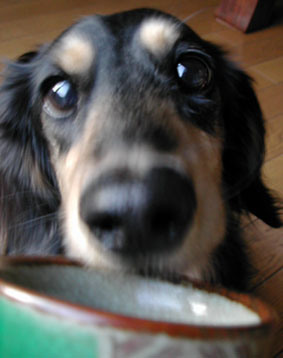 ジョンはなぜか、お茶が大好き~!もちろん純和風の緑茶です。いわゆる「お茶犬」ってやつですね。(違うって!)お散歩に行く前にはいつも、じいちゃんばあちゃんのいる1階の部屋へお邪魔するのですが・・・「そのお茶ください!!」って、ちゃっかりおねだり。そして、飲み残しのぬる~いお茶をごちそうになってきます。「やった~!今日も緑茶ゲット!」この子ドイツ系なのにね~。日本犬気取りだよ!ポチっとお願いします!姉妹サイト:入って安心?失敗しないペット保険の選び方