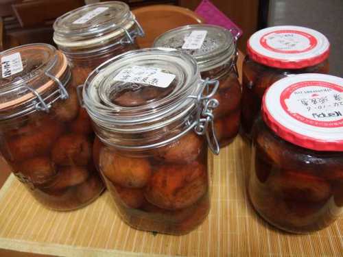 余りにも久しぶりのブログ投稿で恥ずかしいです。暑い暑いといった あの猛暑が遥か遠い事のように思われます。めっきり寒くなり 遠くでは雪の便りがニュースになっているようですね。冷え性でもなかったのに 近年足先がひえて ・・・・歳のせいなんでしょうね 「笑い」 今年も毎朝栗の実拾いをしています我が家の栗の実は隣近所のものより かなり大きいようでその分美味しいようです。お店に行っても 我が家のもののようなサイズは見かけません。人さまにお分けしても 大きさに驚かれます例年のように 渋皮煮にして保存です。キチンと煮沸保存すれば3年は 大丈夫・・・それ以上保存した事がありませんので どの位まで良いのかは判りませんが・沢山作るのですが 殆どどなたかに 差し上げては喜んでいただいています。今年は16こ 作りましたまだまだ 栗拾いは続きそうですよ ついでに 猛暑のあの日 せっせと作りました トマトケチャップケチャップも沢山造って保存しますので カゴメさんや デルモントさんにお世話にならなくても 間に合っていますよやはり作る事 大好き人間です