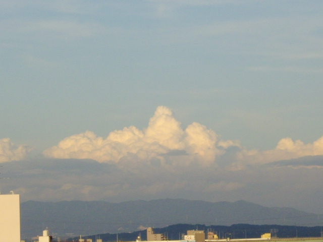 今朝の地震は揺れたな~5時に目覚めたおかげで ちょっと寝坊台風も去り晴天 今日は暑すぎ 35℃蒸し暑い~~遠くに久々夏らしいにゅうどう雲が