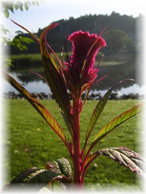 今日は暑いな~~と思っていたら、午後、雷雨となり一気に涼しく なりました。 暑い夏!と思っているそばから秋を感じさせる風がふきます。 トンボも多くなってますネ。 でも、まだ、暑い....残暑の暦です。近所に咲く花です。 近くの公園には、いろいろな花が季節とともに植えられています。 いろいろな花が散歩をする人たちを癒してくれているようです... 鶏頭が開いてきました。 池の中には蒲のようです....。 先端には雄花がまだあるようですネ.....。 近くの林で見つけた...カラスウリの実でしょうか...。 残念ながら花は見れませんでした。