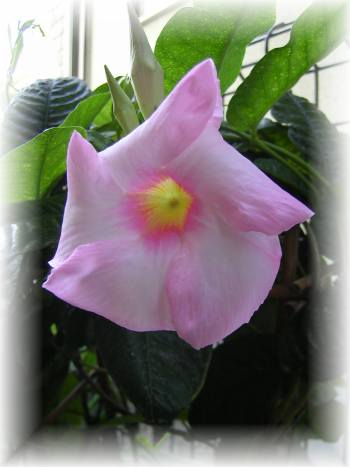 今日は朝から雨が降っています。 昨日は暖かい日差しのある一日でしたが、一転雨。 寒さも少しずつ厳しくなって来ているようですネ。 我が家に咲く花#63は山茶花(椿)です。 庭に植えてから3年ぐらいでしょうか...。 やっと元気に咲くようになりました。 薄いピンクとチョッと濃いピンクの2種類です。 マンデビラが咲き続けています。なが~~く咲きますネ。