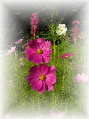 今日は真夏のような日差しの強い日になりました。 夏がまだ終わっていない...。でも、周りには秋の気配...。 季節の変わり目は、季節の押し合いでしょうか? 蝉の鳴き声に、虫の鳴き声....。晩夏と初秋ですネ。近所の公園にはコスモスがいっぱい咲いてます。 種から植えてありました。今年は鶏頭とコスモスです。 毎年組み合わせが変わっています。ご苦労様ですネ。