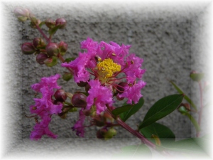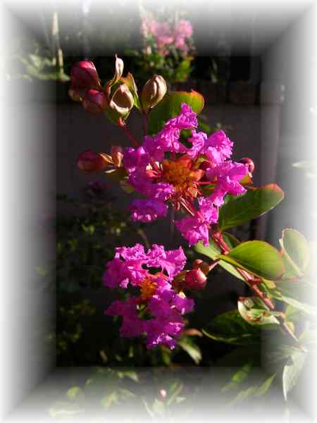 我が家に咲く花#50はサルスベリ_その2です。 今日は台風一過でしょうか、猛暑の気配です。 朝からまぶしい日差しが差し込んでます。 真っ青な空。 蝉もおもいっきり鳴いてます。 夏!~~~!我が家に咲く百日紅・ペチートプラムです。 これも大きくはならないようです。サルもすべりません...? ペチートピンキーよりは少し赤が強いように見えます。 (雨でちょっといたんだようです...) ピンキーも元気に咲いてます。 やっぱりこちらはピンクですネ。 我が家の珍入者です。突然の訪問。 あっと言う間にどこかへ...... かみきり虫でしょうか。