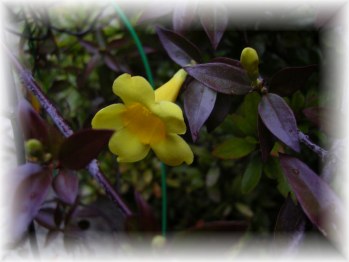 すっかり寒くなってきました。 (寒さとともに、ちょっとサボってました) 明日は冷たい雨模様。寒さが増して、冬へ。 もう雪便りですネ。我が家に咲く花#66はカロライナジャスミンです。 小さな、黄色い花が咲き続けています。 まわりには紅葉。 ※今年は暖かな日が続いたせいか、また、ハイビスカスが 一輪咲きました。何か、こう時期がずれると変な感じですネ。