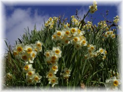 今日は風がとっても強いです。今も....。 風が強いので、寒さも厳しく感じますネ。でも空には晴れ間も。 鋸南町の”をくずれ水仙郷”に水仙を見に行きました。 (強風の中、途中、波しぶきも浴びながらでしたが...)こんなにいっぱい水仙が咲いています。 水仙の花を見ていると、ここは春爛漫のよう....? ”をくずれ水仙郷”です。