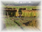 今日も昨日に続いて残暑が厳しい日のようです。 でも、朝夕はめっきり涼しくなりました。 夏の疲れが...。出てきそうですネ。気をつけましょう。 周りでは、もう、稲刈りが始まりました。 9月は稲刈月とも言うそうですから...。 我が家の畑。今、瓜とナスの収穫です。 瓜は今年初めて植えました。 あっと驚くほどに大きくなってます。ビックリ! こどもがいっぱい。 瓜の花です。まだ、いっぱい咲いてました。 韮の花のようです。これも畑で毎年増えてます。 朝、アマガエルが鶏頭の花のベッド(?)で お休み中かな??目は開いてますネ。 気持ちよさそうで動きません...。