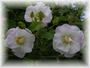 今日はチョッと蒸し暑い一日になりました。 晩夏と初秋が混ざってますかネ。 青空と雲の形にも秋模様を感じます。 急に寒くなる事もあります。気をつけましょう。以前紹介した植物園で見つけた花に酔芙蓉(スイフヨウ) がありました。街中でも咲いていましたが、この花の色は 酔ったように白→ピンク→紅に変わる事から来ているのですネ。 だから....酔・・・。 寒くなると夜の街にもいっぱい増えてきますネ。 同じ植物園で雑草の中に小さく咲いていました。 名前は?ですが....。