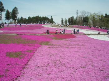 午前中はスポーツジム、その後埼玉スーパーアリーナでレナウンのバーゲンと忙しい一日でしたが、毎年行っている【大宮・花の丘】にも行って来ました。ここは桜の本数が結構あるのですが、駅から遠いのでお客さんも少なめで結構いい散歩になります。チューリップやパンジー等の花々が咲き乱れていて、今日は特に暖かい一日でしたので皆さん子供連れで花見に来ていました。毎年桜と一緒に見れる菜の花は既に咲き終えて整地されていましたその代わり芝桜は満開を迎えていてピンクの花が私たちを迎えてくれましたまさに絨毯のようです。来年の桜の季節も又来ます。