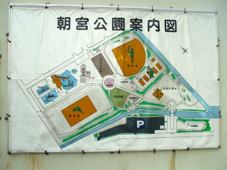 20日は4時に就職支援セミナーが終わったので、車で10分も掛からない朝宮公園に行きました。子供が小学生の頃(20年位前?)一度プールに連れてきた記憶がありますがそれ以来ですねぇ。案内図の下にある駐車場の右側入り口から入り、左に進んで、芝生広場、休憩所、管理棟、プールを撮り芝生広場から下の細い道を通り、グラウンドを写して駐車場に戻りました。結構歩いてこの日は7000歩強でした。初めに公園内案内図です。後で出てくる管理棟の入り口に掛かっていました。施設の案内看板ですが、結構はげていますねぇ。それでは公園内を案内します。まずは入り口です。入り口の先にモニュメントがあります。写りが悪いなぁ(腕が悪いのかなぁ)左に進む歩道です。道の先に・・動物園ではありません。その反対側に子供用遊具も有ります。小山の芝生広場から休憩所、管理棟を望む。手前が管理棟。左奥にプールがあります。中を写せる場所が一箇所しか有りませんでした。ここでもすごい雲が写っていますねぇ。雨は降りませんでしたよぉ。プールの向かいにあるグラウンドです。サッカー場2面は作れる広さですね。駐車場に戻ってきましたが、車の数ほどの人影は見ませんでしたねぇ。落合公園より手入れが悪い気がしますが・・気のせいですかねぇ??