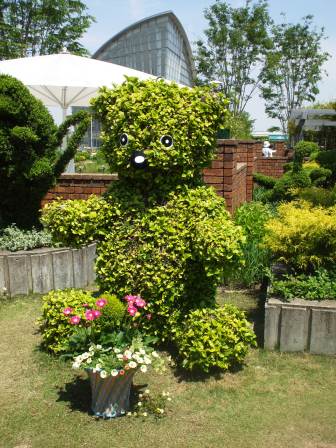 昨日に引き続き、ブルーボネットを掲載しま~す。モデルガーデンに動物の植栽が有りました。一杯有りましたが枚数制限で2枚だけ~~モデルガーデンですので・・・こんなのや反対側には・・・こんなのもこの建物の裏側は?・・・高さ3mくらいのミニチュアですサニーハウスの別角度撮影と建物の中です。傘は女房です。建物の中に黒くなっているのは、映り込みではなく、こんなに大きな木が植えて有りました。サニーハウスの2階から対岸の名古屋ポートタワーを写してみました。窓の映り込みが入っていますね。ついでに、ミニチュアガーデンも有りました。サニーハウスの横に花輪がありました。小さな鉢植えを積んで作ってあります。最後は二人で・・このくらいの大きさです。あっ! 鐘を鳴らさなかったなぁ~うぅ~メタボが見苦しいぃ~~ 最近一段と太ったかなぁ??昼前に入ったのが良かったのか、前半はほとんど人が居ませんでしたが、昼過ぎからは人が増えました。今日はこれから糖尿病検査で~す。