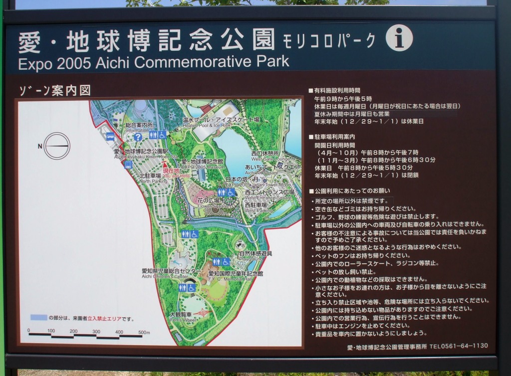 昨日は水曜日のゴルフとあぐりん村を掲載しましたがあぐりん村からの帰りに、モリコロパークに寄って見ようか、と言ったら女房が珍しく良いよ。との返事。何時も出かけたついでに別なところに廻るのは嫌だと言うがこの日は素直でしたねぇ。それでは、モリコロパークの案内図です。北駐車場から、温水プール、アイススケート場、西エントランス広場、花の広場、自然体感遊具、大観覧車の近くまで行きましたので掲載します。駐車場からリニモの駅を。リニアモーターカーが来たので撮りましたが写っていませんねぇ・・手前には観光バスが20台ほど止まっていました。手前はアイススケート場。奥は温水プールです。モリゾーとキッコロが植栽で作られていました。公園の名前に残されたキャラクターです。何箇所かに作られていましたよぉ。スケート場では練習している人が・・真央ちゃんかなぁ西エントランス広場から撮りました。左がスケート場。右が温水プールですね。この建物は博覧会の時にマンモスの化石を飾った建物の跡地に、公園にするとき新しく作ったようです。建物の手前にに池がありますが、写っていませんね。広場から丘に登った所に花の広場があります。此処からは池が見えますね。右側が西ent広場です。自然体感遊具広場(子供広場) 観光バスに乗っていたのは、こちらのエリアに来ていた幼稚園児とお母さん達でこんな数の子供見たの久しぶりでした。私はこの休憩所で休んでいました。このゾウさんの鼻からキリ状に水が噴出していました。水のエリアです。元気な女房は下まで見て来ました。有料の大観覧車。乗っている人は見えませんでしたねぇ。いやぁ~流石に広いですねぇ。案内図に有ったのは今回廻ったエリアだけで、2時間近くぶらついてきましたが全体の半分だけですね。サツキとメイの家などは、案内図の右側に同じ位の広さが有り1回では無理ですね。あぐりん村でパンと山菜おこわを買って行き、西広場で風に吹かれながら美味しく食べました。途中で歩数を見ようと万歩計を開いたらカウンターが00002に。エッ!数字を見る前にクリアスイッチに触れたようです。(沈)帰り道をナビ設定して走り出したら、5分もしないうちに見た事の有る景色が?・・?娘が結婚する前に勤めていた会社のすぐ近くでしたぁ~夏休みに孫達が来たらまた来ようと話をしながら帰って来ました。