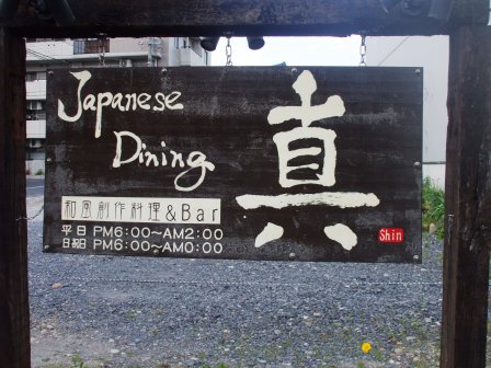 昨日行ったダイニング真の写真紹介です。創作和食ダイニング真、ネットでも評判が良いようです。お勧めしても大丈夫ですね。8テーブル位なので予約していった方が良さそうです。ブログ掲載も快く了解して頂けました。今回は参加者は7名とちょっと寂しい人数です。R155に面したところに看板があります。携帯から掲載した2階部分は物置にしているとのことでした。営業は18:00~なんですねぇ~高蔵寺駅北口を出てR155の方向に10分ちょっと歩いた所にあります。名古屋銀行高蔵寺支店の看板が目印になります。銀行の手前に さのさ寿司 が有りますがこちらはダイニング真のオーナーシェフのお父さんがやって居るお店です。コースメニューにこちらのお寿司も出てきます。携帯で載せた右側のエントランスです。カウンターも4席ほどあります。内部は椅子席です。一番広い場所を使わせて頂きました。左から石井さん(68)、薮田さん(64)、二宮さん(80)です。薮田さんは中部棋院の師範に認定されたそうです。左から岩田さん(83)、東さん(6?)、田原さん(68)です。60直前の若い私の席が空いています。突き出し、刺身盛り合わせ。また少し食べてしまってからあわてて撮りました。食前酒のカクテルは日本酒ベースのブルーのサムライ・・・撮り忘れて飲んでしまいました(沈)野菜サラダ ゴマ豆腐も入っています。カニコロッケです。緑色のはほうれん草のソースです。ロールキャベツです。 トマト味にちょっとタバスコを・・お寿司はさのさ寿司から持って来るようです。四貫有ったのに私は食べてしまったので、田原さんが1貫食べたところで横から撮らして頂きました。あわてて撮ったのでボケていましたね。最後はデザートです。美味しく頂きましたぁ~単品では380円~1000円程度で高くは有りません。コースで頼んだようです。皆さん高いお酒を飲んでいましたが、1人6千円でお釣が来るくらいでした。生ビール4杯。1杯1500円もする久保田万寿を4杯。800円の八海山、市の倉を10杯。私はウーロン茶。皆さんお年の割りに飲みますねぇ~完全に飲み負けです。幹事の石井さんに感謝です。次回は私が幹事やるのかなぁ??