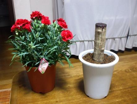 今日は母の日ですねみなさんプレゼントしましたか?女房も私も母がなくなって4年になるので贈る人が居なく成っちゃったんです淋しいですねで先日の結婚記念日のカーネーションはこの日に合わせこのように咲きました5日しか経っていませんが大分咲きましたまだまだ蕾が一杯です幸福の木も芽が膨らんできました5日前はこんな感じ