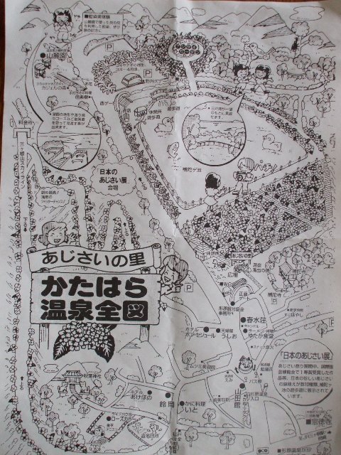 6月17日に、町内の老人会=華の樹会のバス旅行で蒲郡の西に位置する形原温泉あじさいの里に行って来ました。見学時間が短かったのがちょっと残念でした。案内図が見当たらずモノクロのカタログを撮りましたのででにくいですね。真ん中の池の左上に西ゲートの入口が有ります。昨日の写真は此処を入ったすぐの所です。昨日の写真から池を時計廻りに池の淵を撮りました。上の丘にも紫陽花が一杯有りましたが時間が無いので行けませんでした。先ほどの赤い橋の先から対岸を撮りました。入口から一番奥の対岸から西ゲートを撮りました。乗って来たバスも見えますね。池の東側は斜面に紫陽花が一杯です。花の拡大は明日掲載します。お世話になった西浦温泉の「和のリゾートはづ」での昼食前、温泉を頂いてきた後で暑かったぁ~カラオケ写真は個人が特定されますので削除しました。旅館の中も少しだけ。海を眺めながらの露天風呂は我々5人で貸切でした。料理写真を載せておきます。他にご飯と貝の味噌汁が出て、お腹一杯でした。お作りが見えなかったので・・食べてからですが・・天麩羅は暖かいのが出てきました。デザートは乳カンでした。冷えて美味しかったです。最後に参加者の集合写真をホテルの玄関で撮りました。おまけは帰りに寄った山本水産さんの写真。大魚旗が一杯飾ってありました。楽しい一日でした。秋は何処に行こうかと言う話が出ていましたね。明日は飾られていた花を幾つか掲載します。
