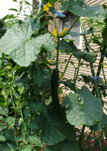 脚立に上がった影響ですかね、太ももの裏側が痛いです。昨日庭木の剪定が終わった後、女房丹精の野菜たちも写真に撮って置きました。キュウリは既に何本も頂いていますが、写っているのも昨夜のサラダになりました。まだ花が一杯ついているのでまだまだ食べられそうです。ミニトマトも色づいて、もうすぐ食べれるのかなぁ?釣鐘形の実は初めてですね。その手前にナスも生って、こちらも幾つか頂いています。隣にピーマンも何個か実を付けてます。まだ食べていません。アスパラは何本か葉が開いてしまっています。一本しか食べて居ないのになぁ。写真は有りません。居間の前に長く咲いている花。名前は・・・出てきません。駐車場脇のサツキの刈り込みも撮って来ました。