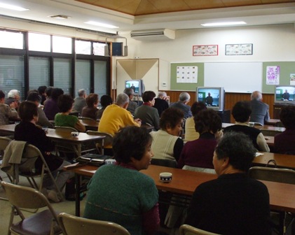 華の樹会例会にきています。 一年の振り返りで今年の例会のビデオ鑑賞と市消防本部職員による 「高齢者の防災について」の講演が有ります。 講演が始まったので聞いています。
